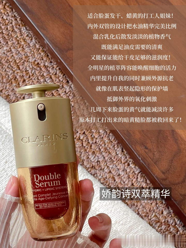 娇韵诗第九代“黄金双萃”精华以其独特的“双源力量抗老”理念、卓越的核心成分以及轻盈的质地和显著的护肤效果赢得了广泛好评。它不仅能够解决肌肤的各种老化问题如细纹、松弛等,还能提升肌肤的整体状态,使其更加年轻健康。